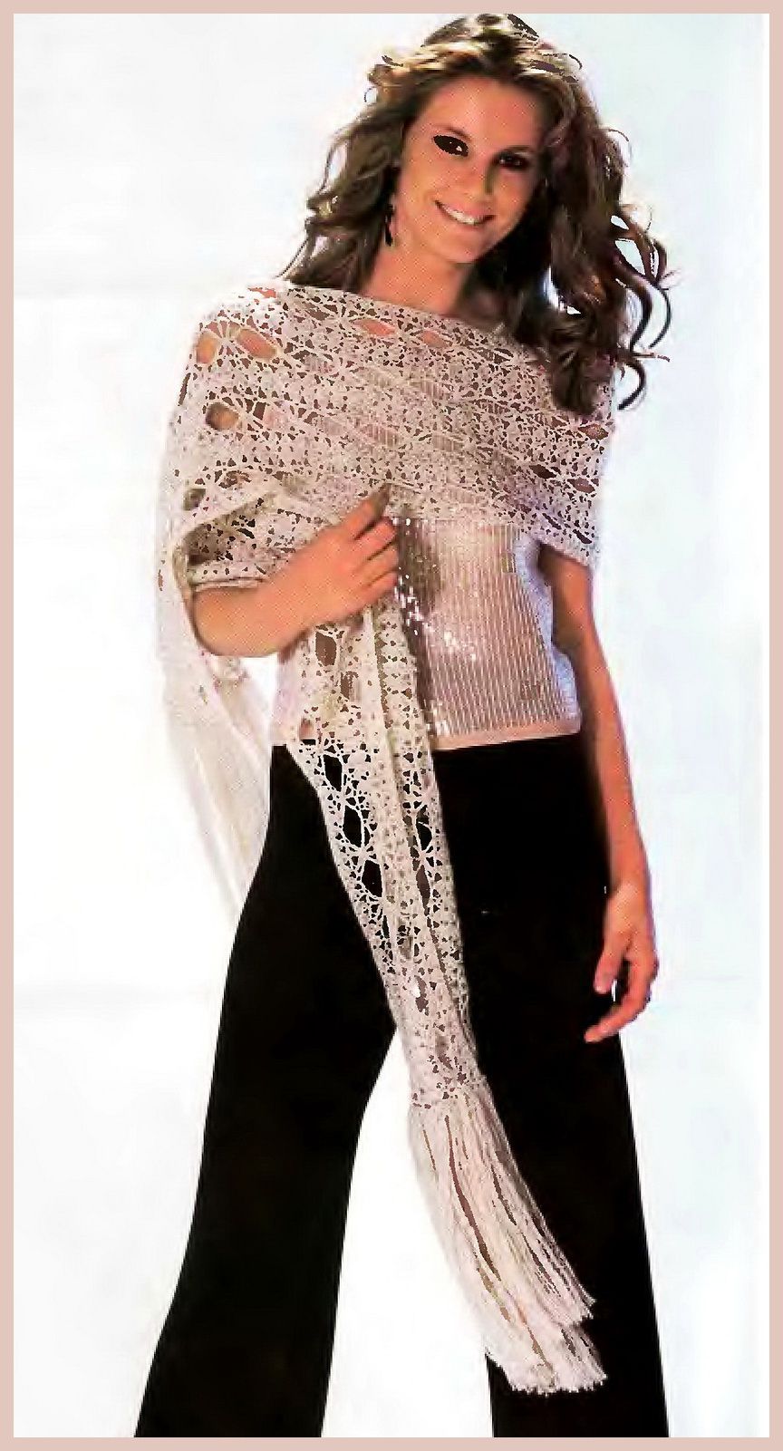 Ажурный шарф с кистями. Схема вязания длинного шарфа крючком. - Схемы вязания палантинов - Схемы для вязания - Уроки вязания крючком - Вязание крючком, мотивы, схемы для вязания крючком