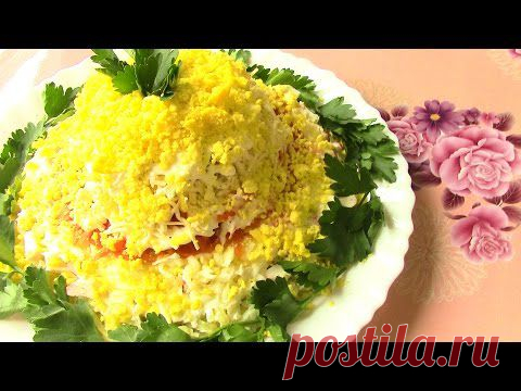 К 8 МАРТА " ЖЕНСКИЙ КАПРИЗ " . НЕЖНЫЙ САЛАТ С КРАБОВЫМИ ПАЛОЧКАМ И СЫРОМ.