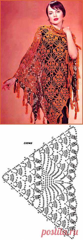 Ажурная шаль связанная от угла. Связать крючком шаль, схема. - Схемы вязания шали - Схемы для вязания - Уроки вязания крючком - Вязание крючком, мотивы, схемы для вязания крючком