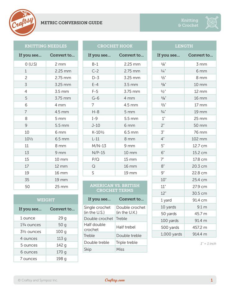 Преобразования единиц измерения справочник для вязания & вязания крючком