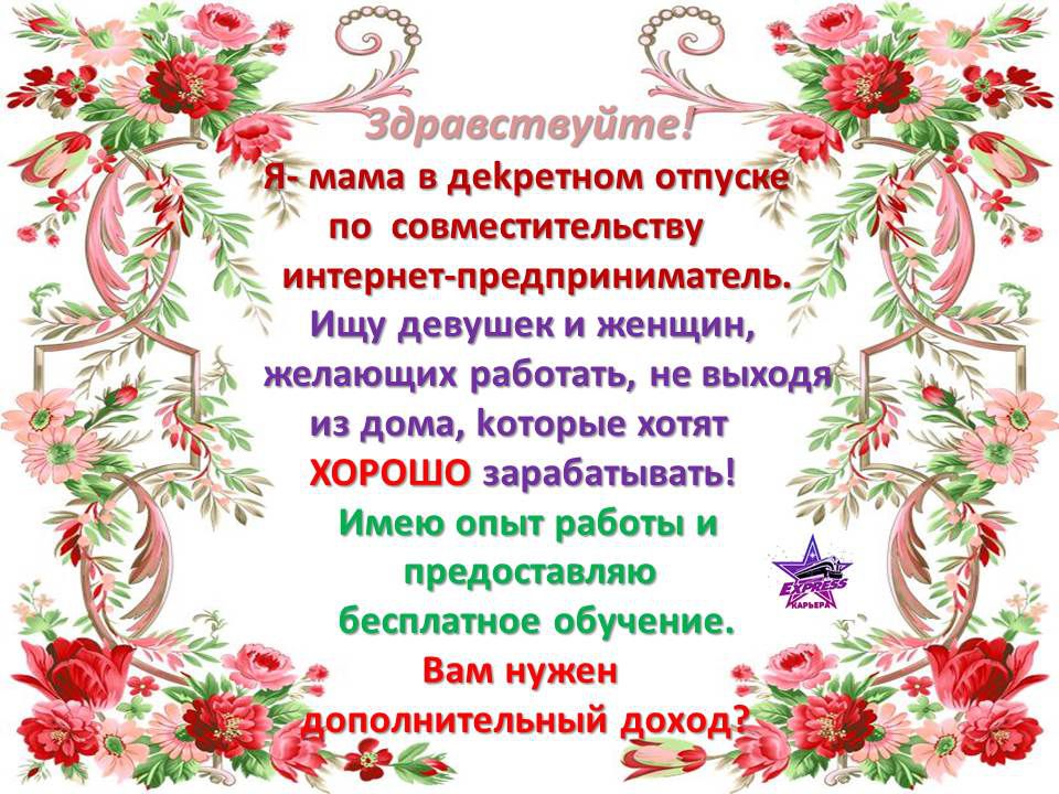 Работа – удалённая, полностью ведётся через интернет, в любое удобное для Вас время, без вложений.