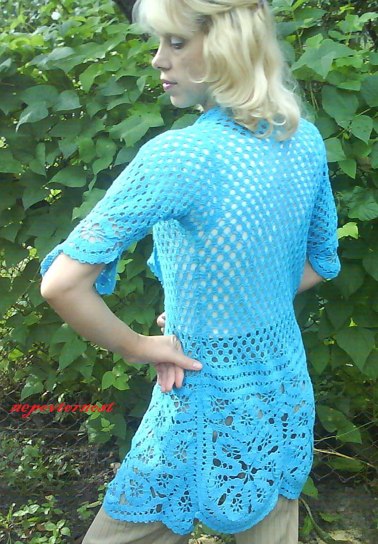 Жакет связан крючком – верх двойная сеточка, низ жакета – брюггские кружева.Рукав 3-4. Очень элегантный и модный. свяжу любой цвет и размер.
