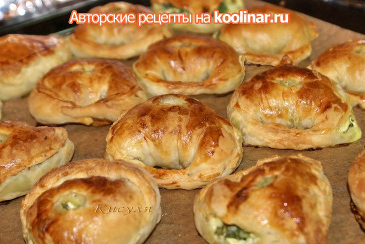 Слоёные пирожки со шпинатом и адыгейским сыром