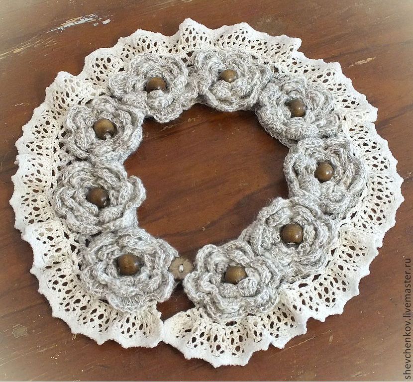 Бохо-воротник Степные розы - ажурный воротничок,ажурный воротник крючком