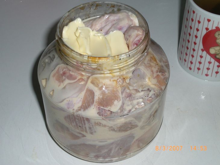 Курица в банке+коктейль Ингредиенты тушка куры около 2 кг (или окорока) крупные луковицы — 2 шт. сливочное масло соль, черный молотый перец