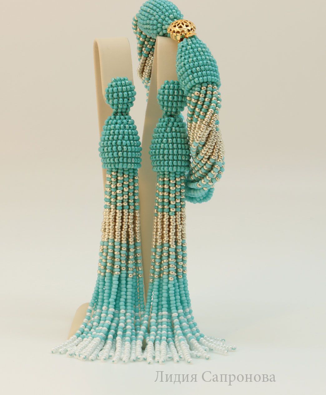 Браслет и серьги Оскар бирюзово- золотые | biser.info - всё о бисере и бисерном творчестве