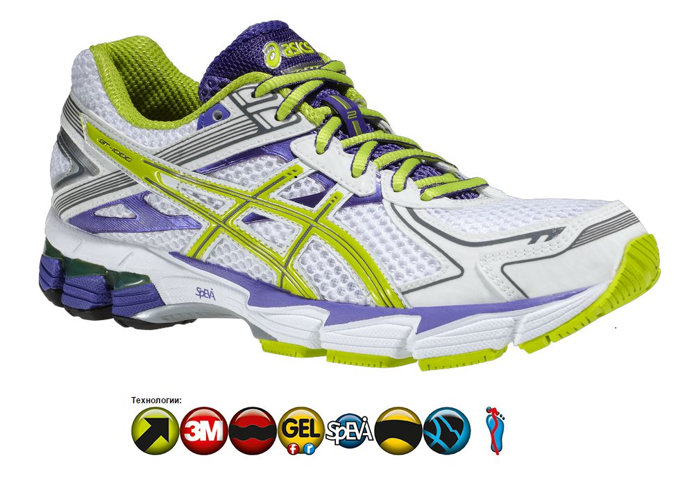 ASICS WOMENS GEL GT-1000 2 RUNNING SHOES - SNEAKERS T3R5N-0105 WHITE/LIME/PURPLE