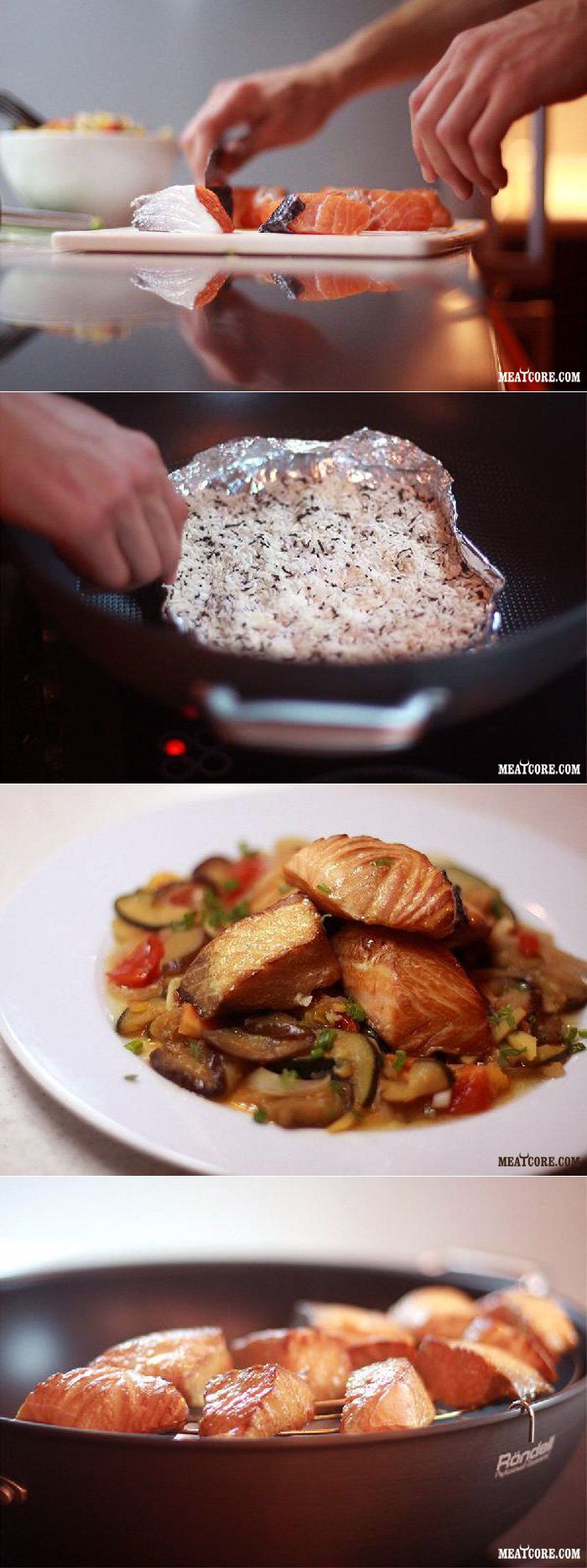 Копченая рыба дома готовится легко и вкуснее магазинной Продукты для покупок: 1. Филе лосося – 300 гр.; 2. Рис «Басмати» - 50 гр.; 3. Цедра лимона (тертая) – 3 ч.л.; 4. Зеленый чай – 25 гр.; 5. Сахарный песок – 70 гр.; 6. Соль – 4 ч.л.