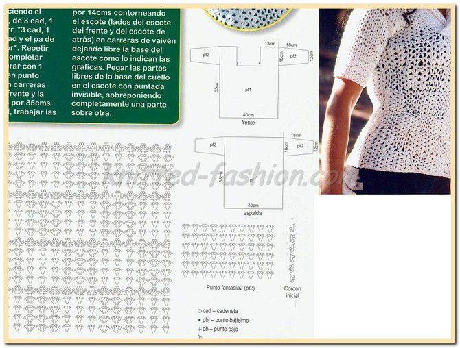 Белая блузка4 - вязание крючком схемы,модели и описания