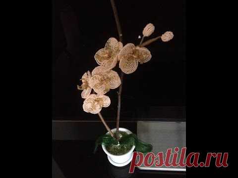 Орхидея персиковая. Мастер-класс, бисероплетение. Часть 3/3. Biser.