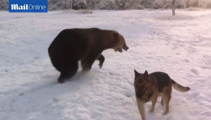 Играющий с собакой медведь стал звездой YouTube | Уши, лапы, хвост
