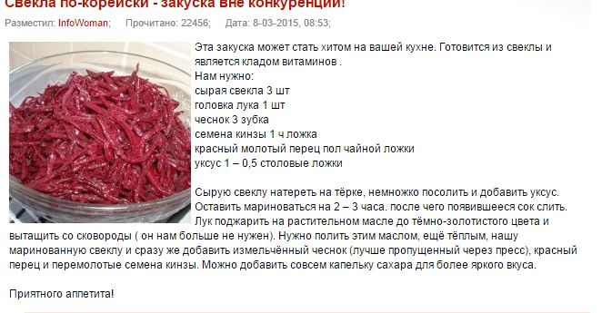 Свекла по-корейски - закуска вне конкуренции! » Женский сайт InfoWoman.com.ua. Полезные советы для женщин