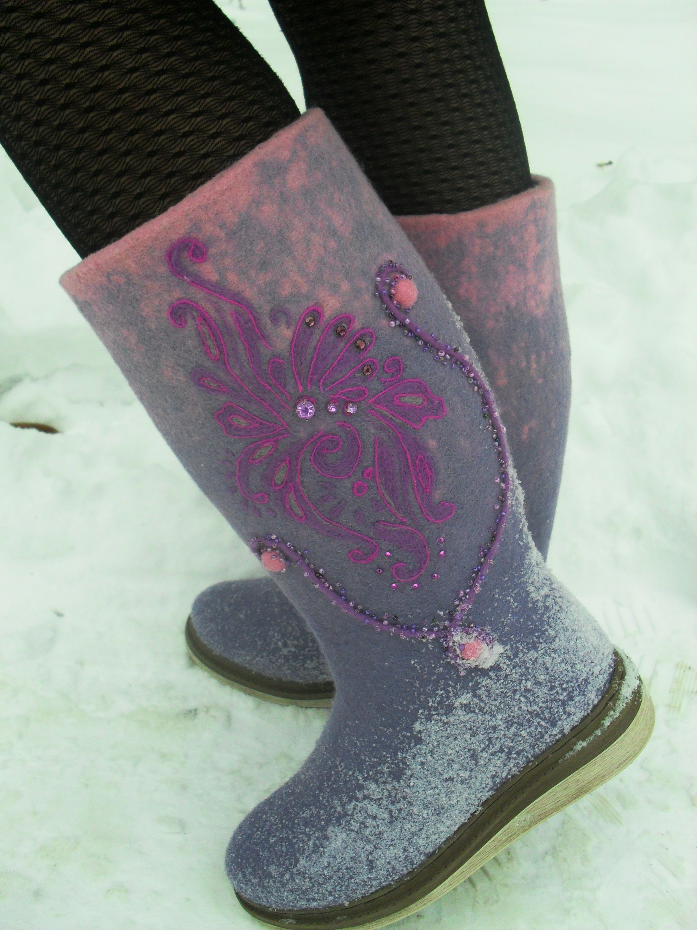 Валенки ручной валки из шерсти100%, на подошве, удобные в носке, декор - биссер,клейкие стразы. Оригинальные, теплые, мягкие. Хорошо держат форму. Сохранены все лечебные свойства шерсти.