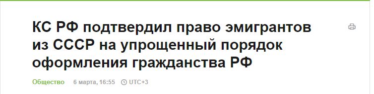 ТАСС: Общество - КС РФ подтвердил право эмигрантов из СССР на упрощенный порядок оформления гражданства РФ