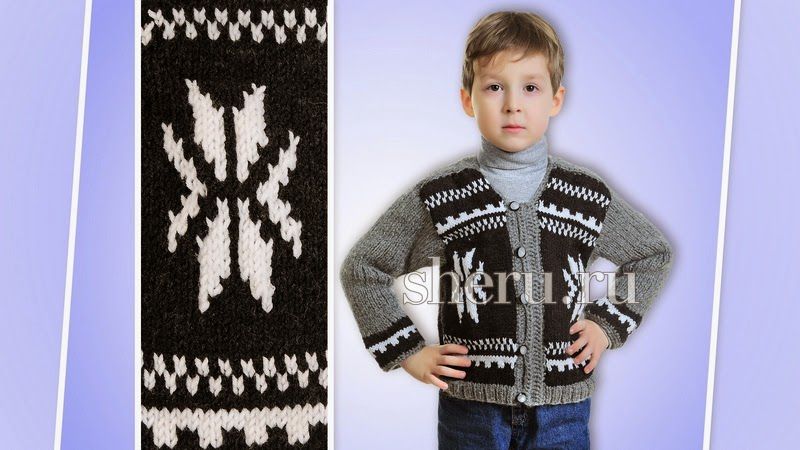 Детская кофточка для мальчика спицами.Схемы жаккардовых узоров, выкройка, подробное описание выполнения в картинках