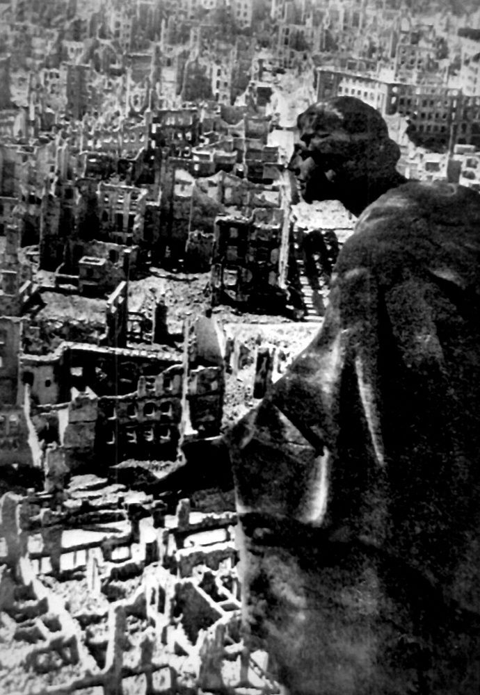 Дрезден, Май 1945 года. © Репродукция Фотохроники ТАСС / 13-15 февраля 1945 года, чтобы затруднить перемещение сил противника на Восточный фронт, ВВС Великобритании и США осуществили серию бомбардировок Дрездена ... было полностью парализовано движение через город, разрушено около 80 тыс. зданий, примерно 90 тыс. повреждено. | ТАСС: - Бомбардировка Дрездена