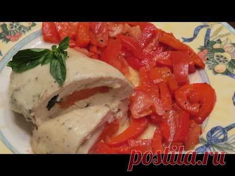Куриная грудка с печеным перцем, моцареллой и базиликом