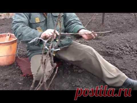 Подвязка лоз винограда различных возрастов после весеннего открытия кустов.
