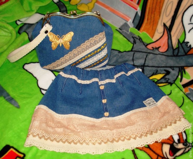 Шьем для девочки юбку и сумочку из ненужных джинсов | Своими руками