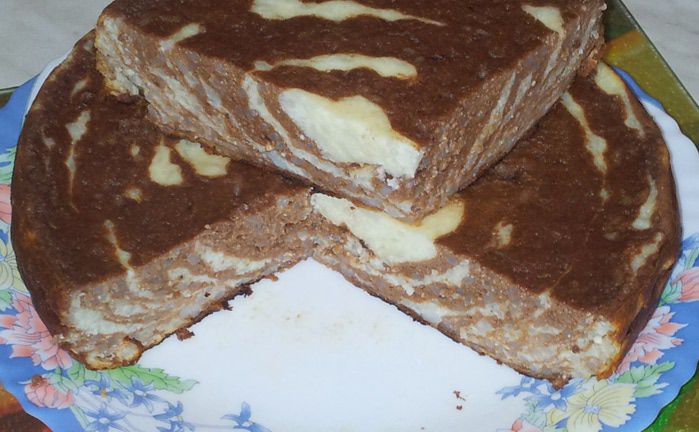 Полосато-шоколадная творожная запеканка в мультиварке..