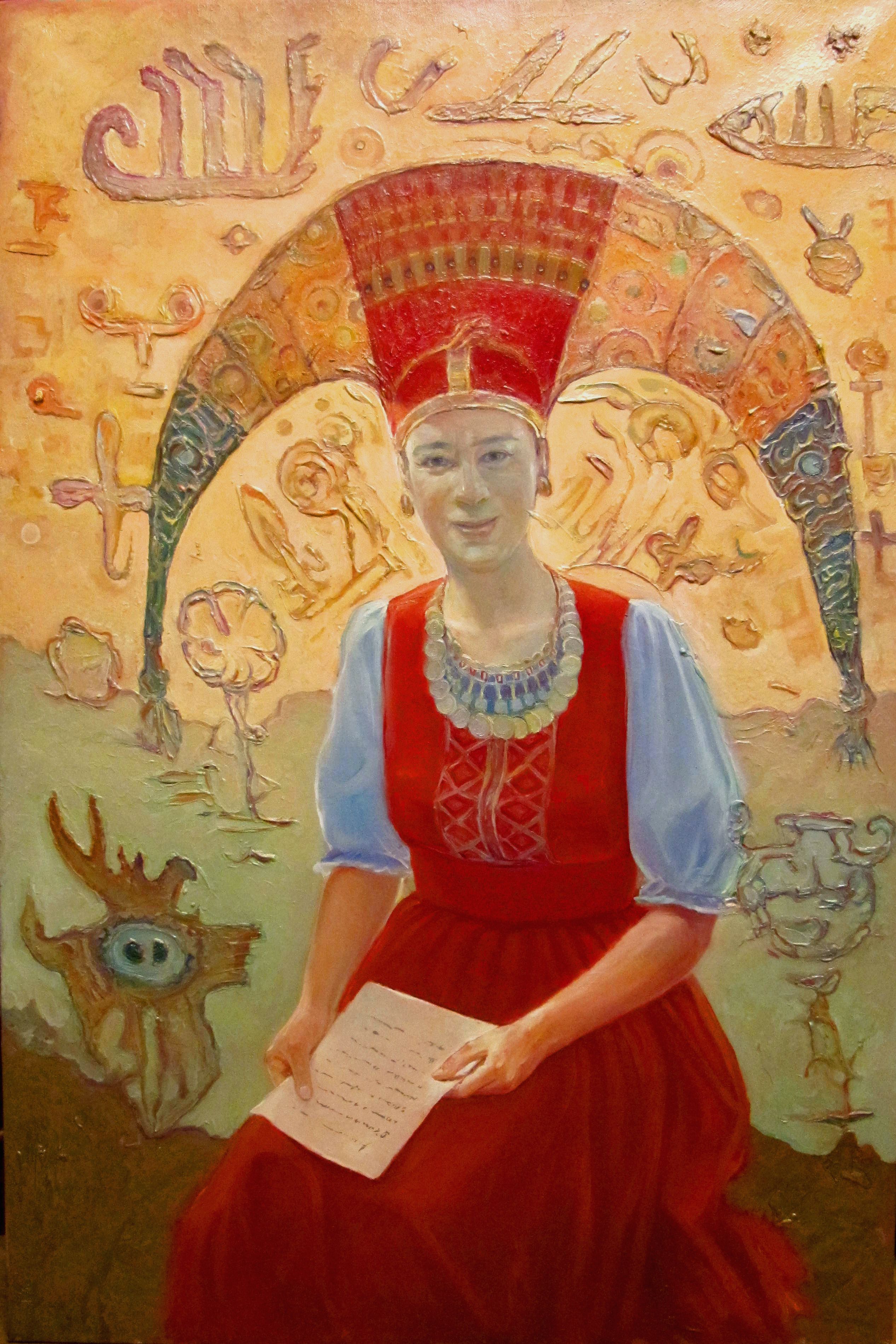 Портрет в национальном стилизированном костюме. 12х90 см  холст, масло