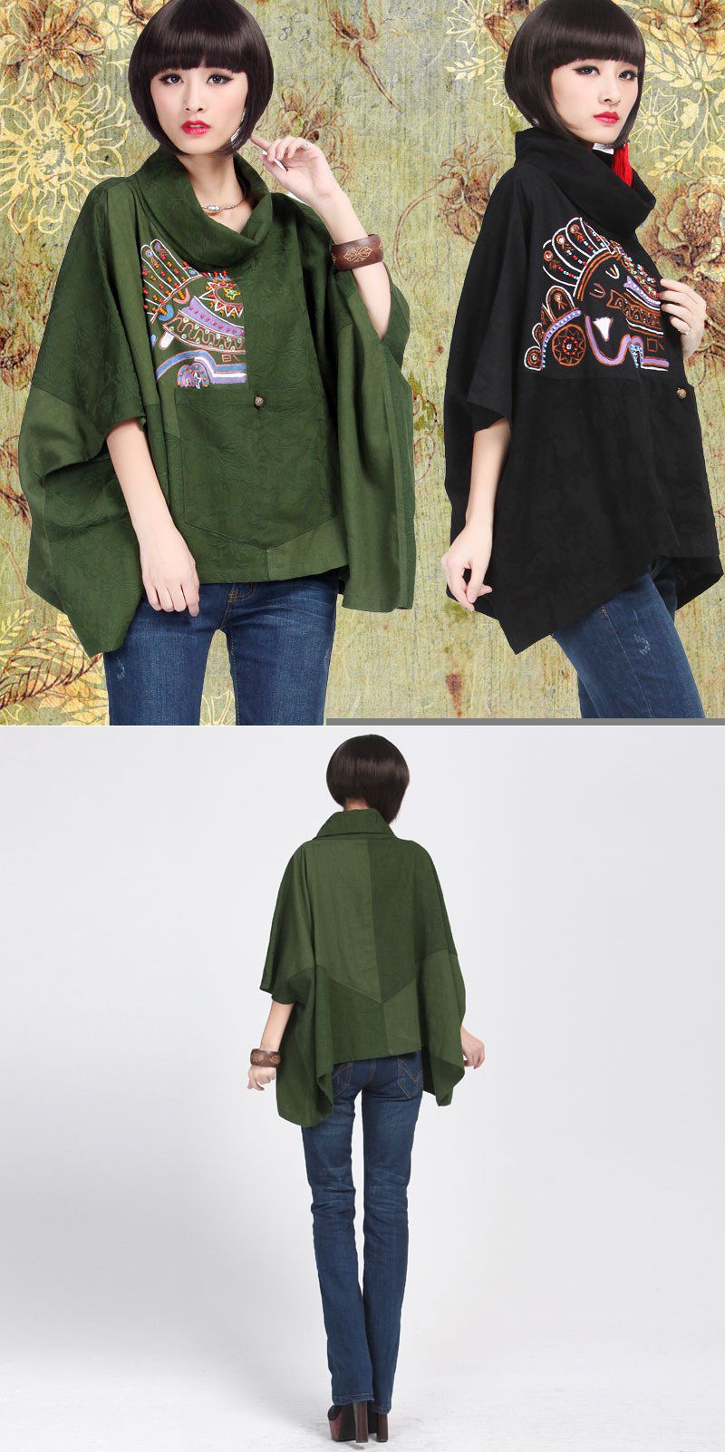 Блузы : Свободная блуза с воротником хомут, украшенная бисером и пайетками