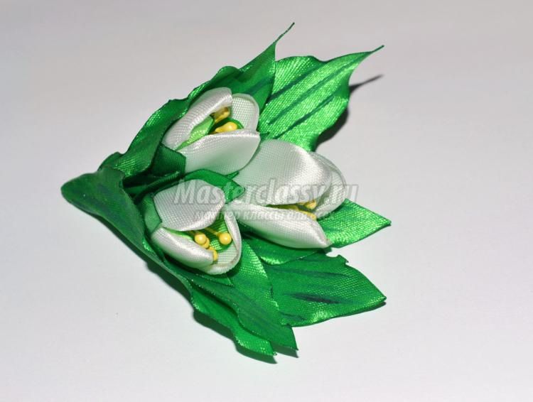 Брошь из лент. Букетик подснежников. Мастер-класс с пошаговыми фото