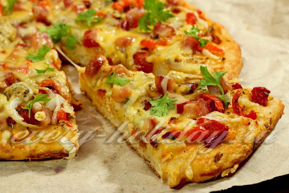 Пицца с ветчиной и курицей