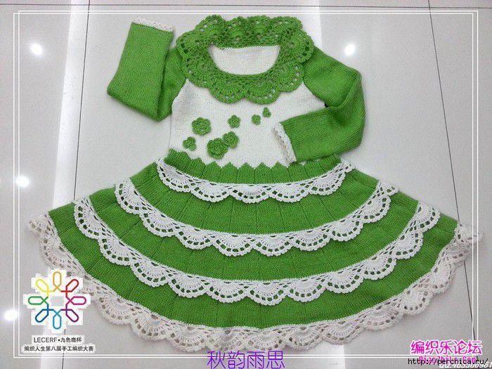Детское платье с рукавами связанное спицами с отделкой крючком