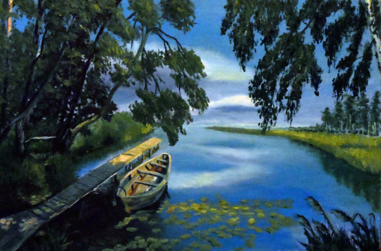 Работа №07 - Деревенская пристань. Кисть, масло. 60см х 40см сентябрь 2014 COPYRIGHT 2014
