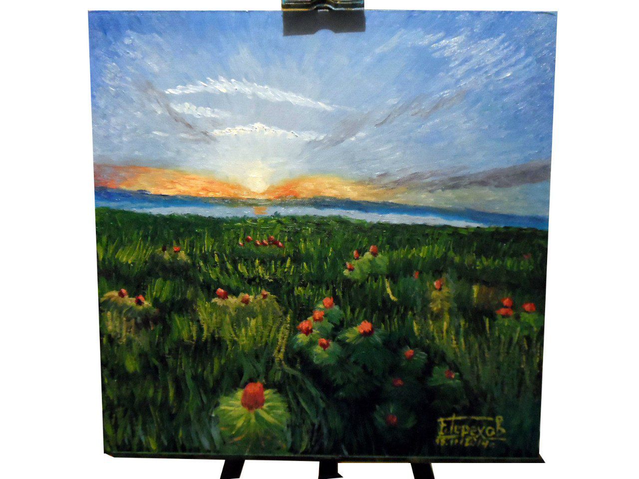 Работа №09 - Вдохновение Ван Гогамелкозернистый холст на картоне, кисть, маслоразмер: 50см х 50см15.11.2014