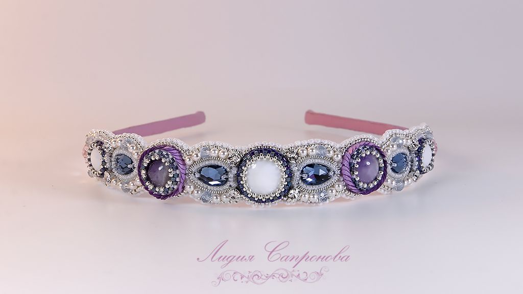 Ободок Очарование с перламутром и аметистом | biser.info - всё о бисере и бисерном творчестве