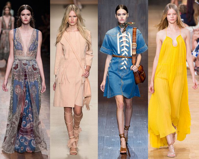 В этом году модные платья весна-лето 2015 пропитаны эстетикой 1970 годов, потому что в этом году очень популярно подчеркивать свою женственность. Романтическое макст, аристократичная замша, эклектические принты и бохо-шик – все это главные акценты этого сезона.