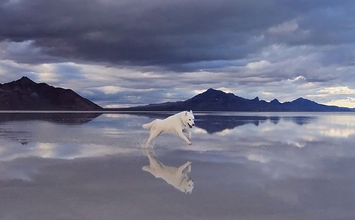 Белоснежный хаски – всегда центральная фигура на снимках своего хозяина