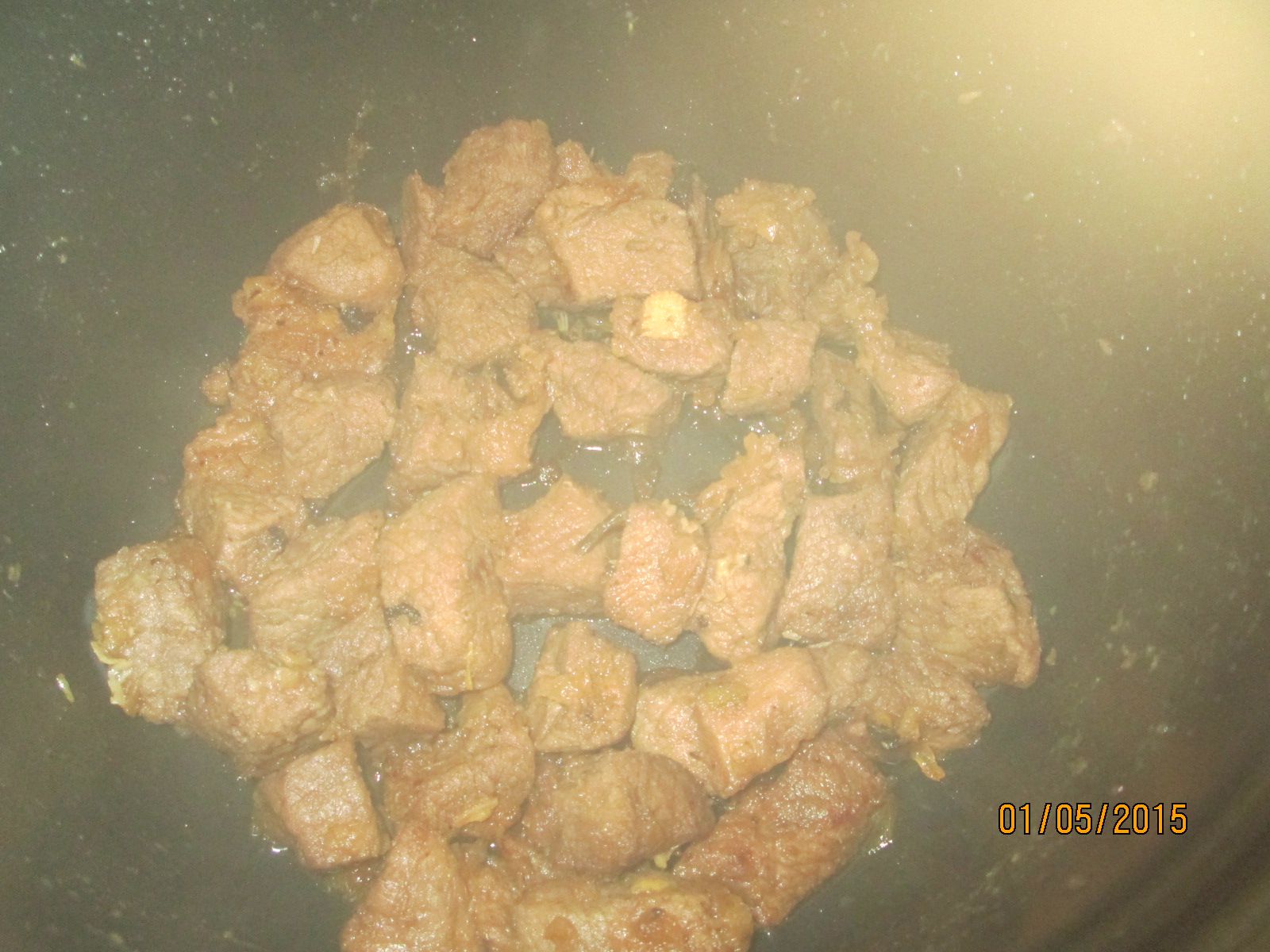 жарим мясо 30 мин ,переодически открывая крышку и перемешивая.