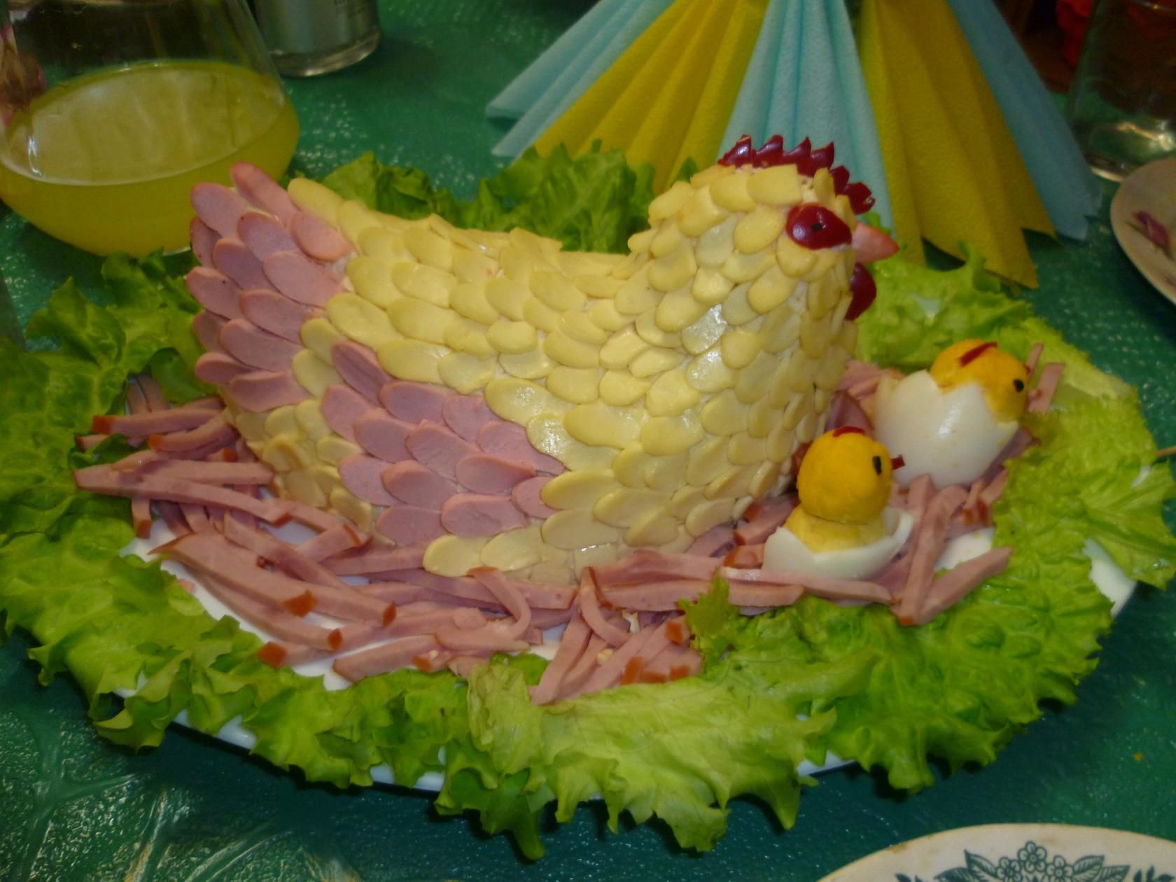 КУРОЧКА СЫРНАЯ !!! **Салат: вареные яйца, плавл/сырки, картофель, морковь, майонез, чеснок, майонез. * Декор: сыр, колбаса, болг/перец, зелень.