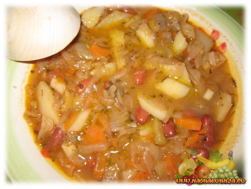 Суп из квашеной капусты с фасолью