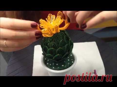 ▶ Кактус с оранжевым цветком. Beaded cactus. Бисер с Анной - YouTube
