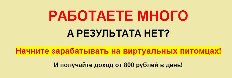 Сегодня вы научитесь зарабатывать на виртуальных питомцах от 800 рублей в день!