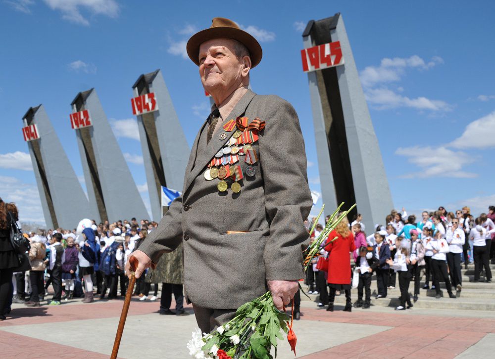 Ветеран у мемориала "Боевая слава забайкальцев" в Чите © Евгений Епанчинцев/ТАСС | ТАСС: Общество - Как отметили День Победы в городах России