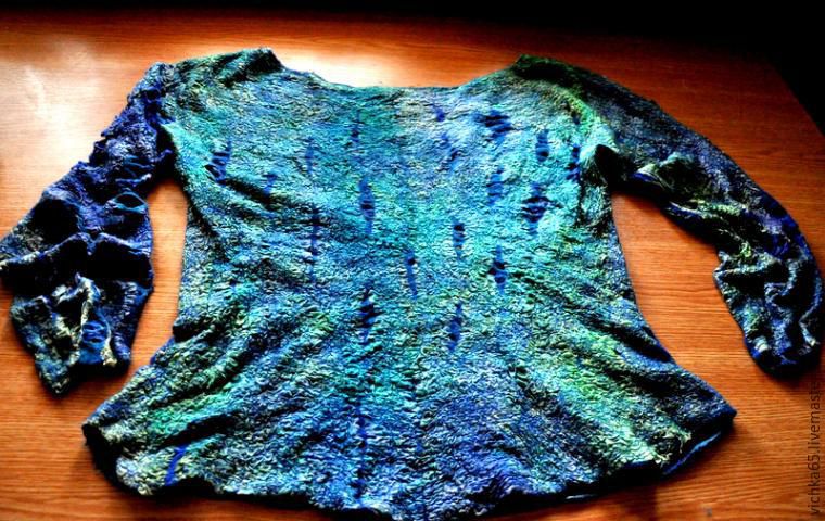 Валяем двусторонний свитер в технике «нунофелтинг»: ажурные фактуры, замшевый эффект и минимум шелка - Ярмарка Мастеров - ручная работа, handmade