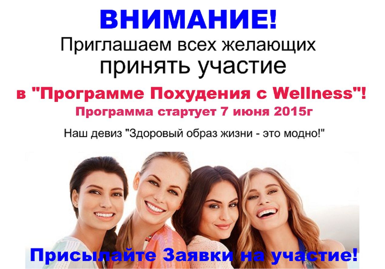 Объявлен НАБОР в Группу Похудения с Wellness!! Принять участие могут все желающие. Что нужно взять с собой? Хорошее настроение и Силу воли!! Заявки отправляйте на почту с пометrой "Участие в ГП 2-й поток", расскажу об условиях участия.