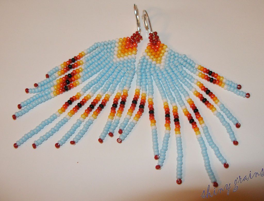 Купить Длинные серьги с бахромой "Пирога", бисер - голубой, белый, желтый, оранжевый, красный, черный