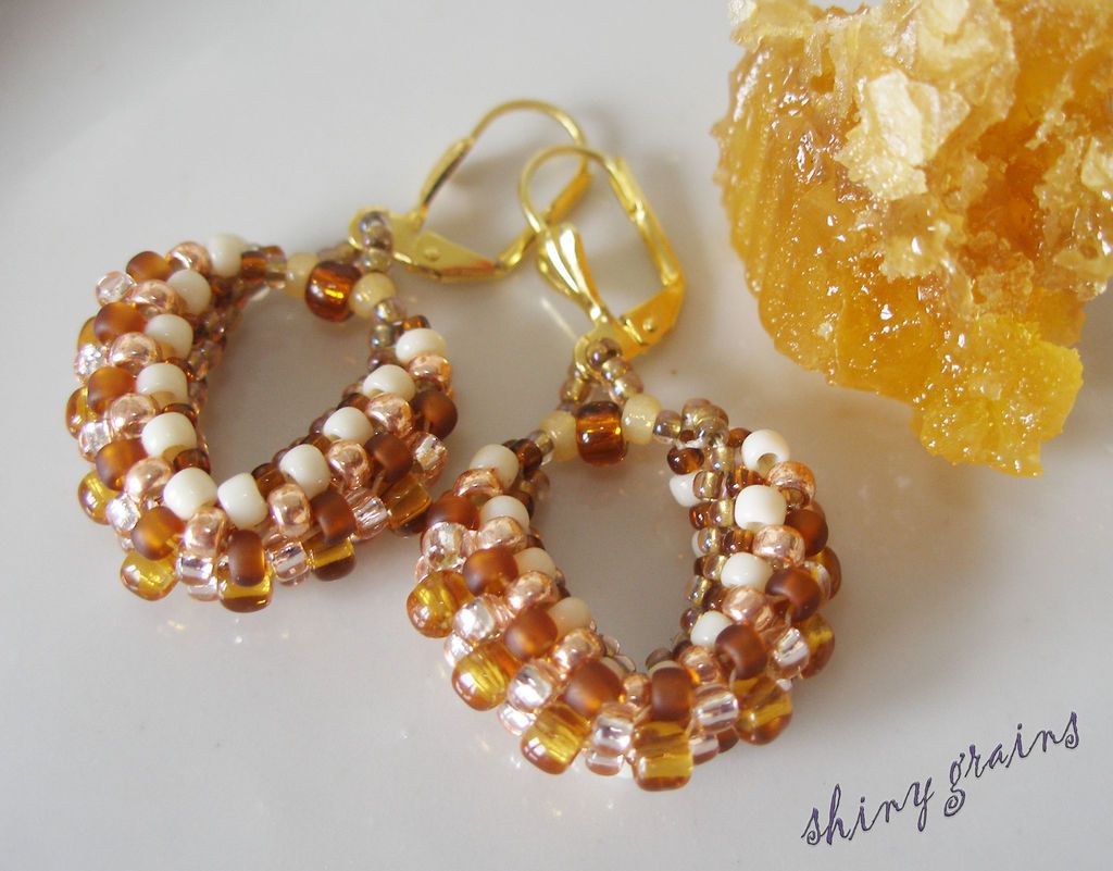 Купить Объёмные серьги-кольца "Молоко и мёд" - золотой, молоко, мед, серьги