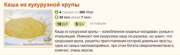 Рецепт: Каша из кукурузной крупы на RussianFood.com