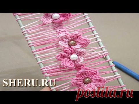 Crochet Hairpin Flower Lace Урок 19 Вязание ленты с цветочками на вилке