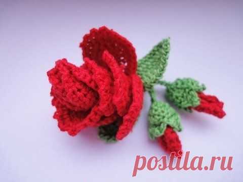 Роза с бутонами Rose and flower buds Crochet - YouTube