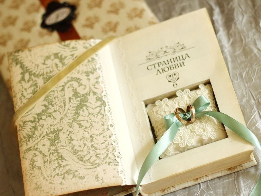 Книга как подставка для обручальных колец. Свадебные аксессуары