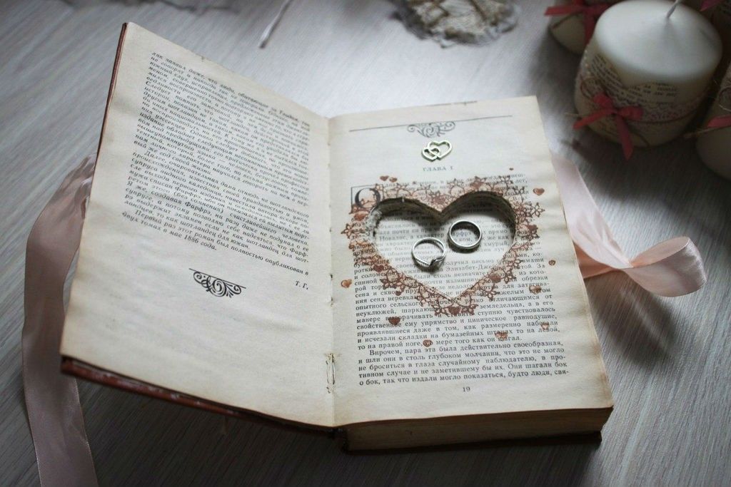 Книга как подставка для обручальных колец. Свадебные аксессуары