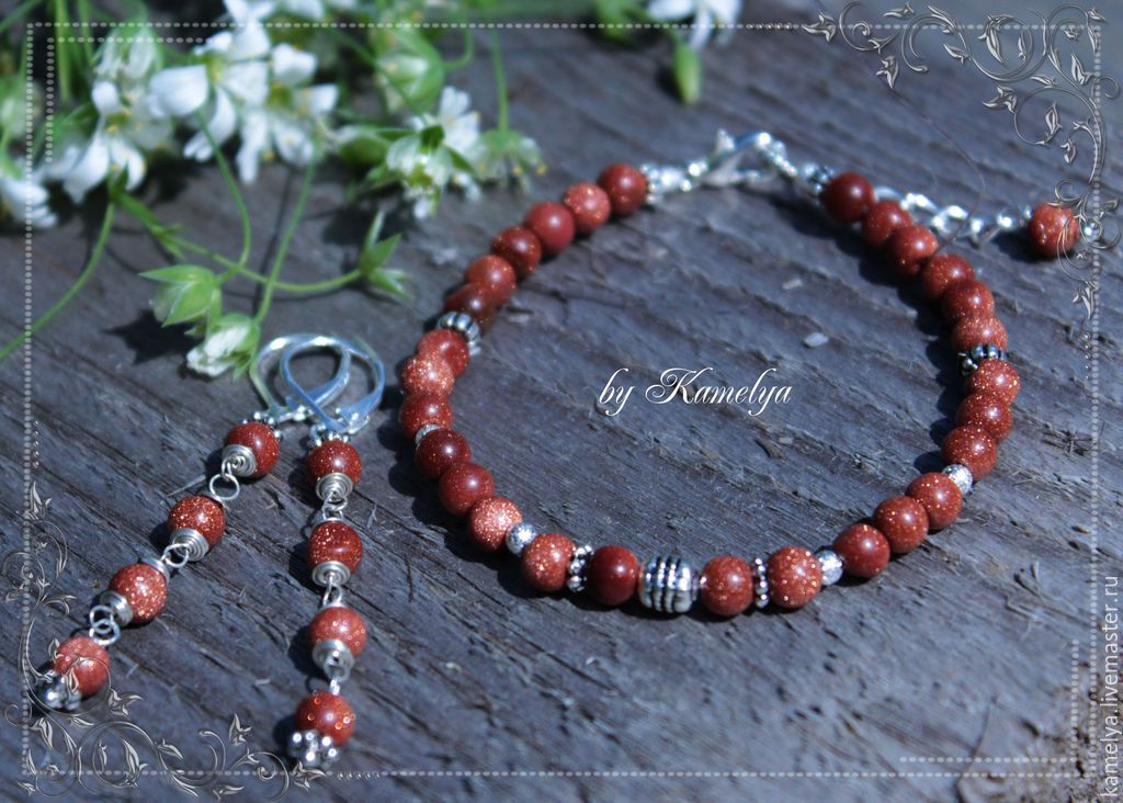 Купить Комплект из авантюрина и серебра 925 "Золотые пески" - Серьги на каждый день, серьги на лето